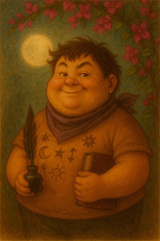 Me encanta esta ilustración del Billy Buganvilla que te imaginas. Si te soy sincero, yo me lo imaginaba algo más rellenito; con un pelín más de peso… ¿Puedes ponerle algunos kilitos de más a la ilustración que me has hecho?