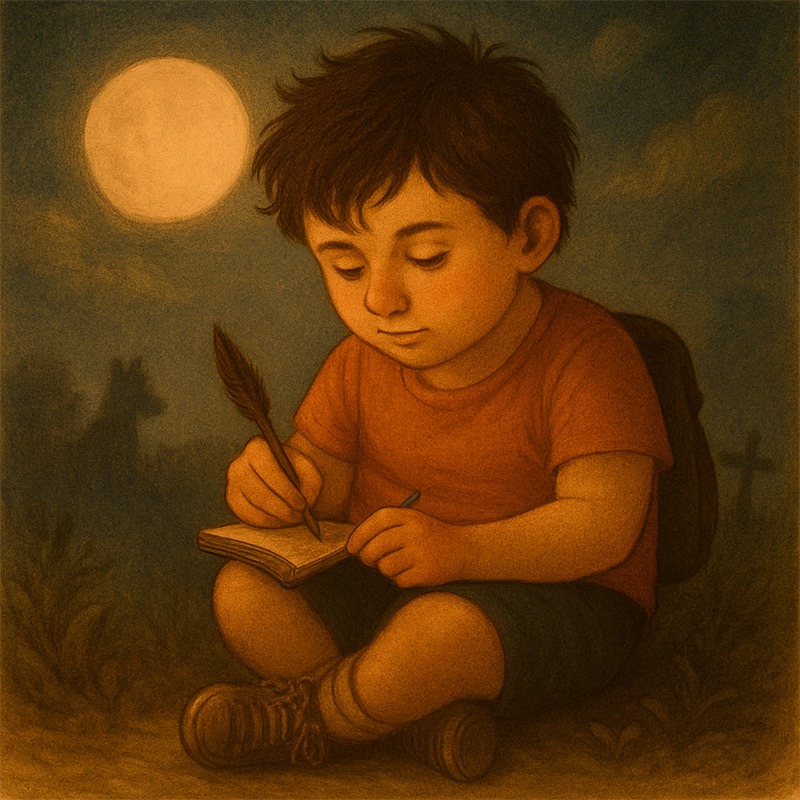 (ChatGi le pone títulos a las imágenes que genera, no sé por qué, pero es una buena forma de distinguirlas. «Chico bajo la luna llena» fue la primera imagen que generó, la que está en la primera de estas entradas; «El niño y el mapa del tesoro» fue la última de la anterior entrada). Me dio esta: