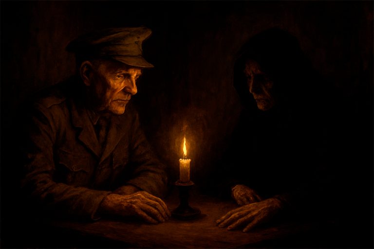 Pero esa pregunta no obtuvo respuesta. Entonces todo se volvió extrañamente negro, y una sombra atravesó el pueblo, despacio, como un rumor de hojas secas arrastrándose. Sólo pudo distinguir una silueta y el brillo de la hoja de una guadaña que cruzaban la calle.