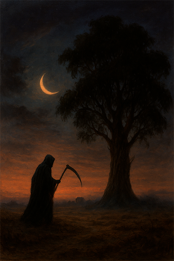 Puede parecer extraño, pero cada veintiuno de junio, cuando se acerca el momento, un rumor de hojas se extiende desde el Eucalipto. Un rumor lejano que parece gritar, con la voz de Ruth, “¡fuego, fuego!” Y cuando el Hombre de la Guadaña desaparece con sus remolinos negros tras él, una brisa suave nos acaricia los rostros, y entonces volvemos a entrar en las casas…
